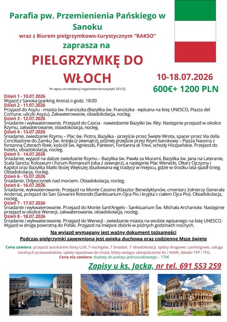 3. Jutro od godz. 15.30 – odwiedzę rodziny, które chcą by je odwiedzić (proszę o indywidualny kontakt w zakrystii w celu ustalenia godziny).